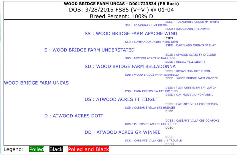 - Sire's Sire: Wood Bridge Farm Uncas V+V 85 -